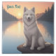 Samoyed sentado junto a un lago al atardecer. Agrega esta imagen a otros productos. Agrega tu propio texto también. Muchos animales en mi tienda.