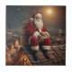 Este mosaico de Navidades muestra a Santa Claus tomando un descanso en la víspera de los Navidades. Hace un gran trívet o plato caliente