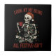 Azulejo Santa Skeleton with Cat Holiday Snark