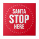 Santa Stop Aquí el rojo y blanco lindo y divertido mosaico de cerámica, decoraciones navideñas. rodeado por una delicada corona de tiernos copos de nieve.