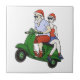 Azulejo Santa y la Sra. Claus montando una moto