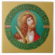 Este rosetón presenta a Santiago el Menor cargando un garrote grande y pesado, un garrote de batanero, el instrumento de su martirio y su símbolo principal. Sus manos dobladas en oración no es solo una pose piadosa común, sino otro atributo significativo: ¡Tan intensa era su vida de oración que Santiago supuestamente desarrolló callos gruesos en sus rodillas, lo que le valió el apodo de "[Viejo] Rodillas de Camello"! (Eusebio, Hist. Eccl. 2:23-24 después de Hegesipo). + Fiesta: 3 de mayo + Crédito de la imagen (JMAS 05): Imagen antigua de Santiago el Menor de una estampa devocional de finales del siglo XIX en cromolitografía con acentos dorados publicada originalmente por Josef Müller, editor de arte, Múnich, Alemania, de la colección privada de efímera religiosa del diseñador. La imagen es una de doce en la Serie de Apóstoles del editor (N.º 12155). + ¿Prefiere un color de fondo diferente? Vea los tonos coordinados sugeridos en la tarjeta