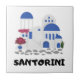 Diseño único Santorini Grecia Vintage que muestra un pueblo de la isla griega de Santorini.