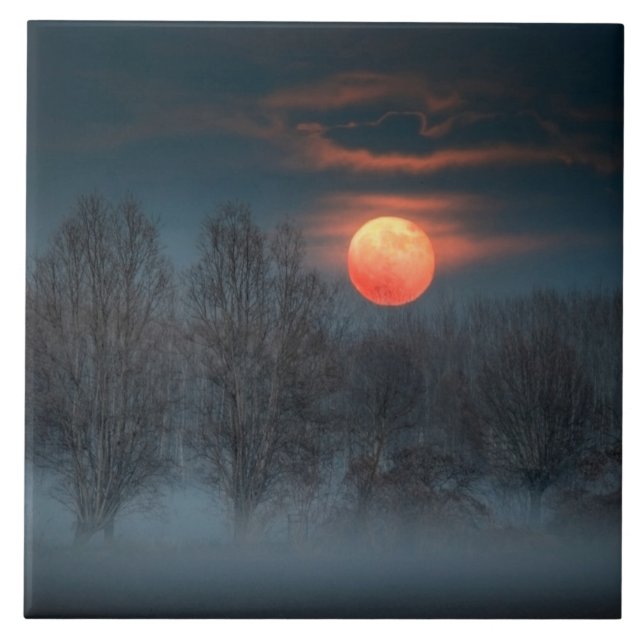 Italia, la luna llena de finales de noviembre surgiendo de detrás de un bosque nublado en el campo cerca de Scalenghe en Piamonte. | DanitaDelimont.com | Interfoto | EU16 INT0052