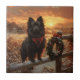 Azulejo Schipperke Dog Rustic Winter Sunset