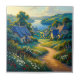 Camino dorado hacia agua azul es un luminoso paisaje rural creado como un homenaje a los entornos radiantes e idealizados asociados con Maxfield Parrish. Un sinuoso camino iluminado por el sol guía al espectador a través de jardines floridos y cabañas escultóricas hacia una serena extensión de agua azul cobalto, enmarcada por colinas onduladas y cielos brillantes. El color saturado, la luz teatral y la composición cuidadosamente equilibrada crean una escena que se siente atemporal y suavemente irreal, evocando una sensación de calma, belleza y quietud mítica sin imitar directamente la obra de Parrish.