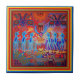 Magnífica pintura al hilo (Huichol) que representa la elaborada ceremonia ritual chamánica.
