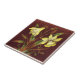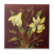 Esta baldosa de diseño Daffodil/Narcissus fue hecha en varias variaciones de color. Las nuestras se reproducen a partir de baldosas pintadas (barbotine) de finales del siglo XIX. Esta es la versión más oscura con un fondo de óxido cálido. (La versión más ligera se muestra por separado).