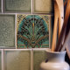Este impresionante azulejo de cerámica presenta un patrón simétrico de plumas de pavo real inspirado en los períodos Art Deco y Belle Époque. La Belle Époque, o "era hermosa", fue una época de florecimiento artístico y cultural en Europa desde finales del siglo XIX hasta principios del siglo XX. La pluma de pavo real fue un motivo popular durante este tiempo, simbolizando el lujo, la belleza y la renovación. La falsa textura de relieve de esta baldosa le da al diseño una dimensión y profundidad añadidas, convirtiéndolo en una pieza de arte verdaderamente única para su hogar. Tanto si te gusta el Art Deco como si simplemente te gusta la elegancia de la Belle Époque, esta baldosa hará las delicias de todos los huéspedes.