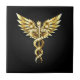 Símbolos dorados del Caduceus poligonal sobre fondo negro aislado. Símbolo de polos bajo de la medicina.