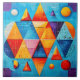 Símbolos geométricos Resumen #09. Una sinfonía de formas coloridas converge en un caleidoscopio de tonos, creando un paisaje de ensueño abstracto geométrico surrealista. Los triángulos, círculos y arcos audaces se mezclan a la perfección en una danza de azules vibrantes, amarillos, naranjas y morados.