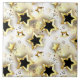 Patrón inexorable de joyería, oro y estrellas negras sobre fondo texturado claro. Estrella dorada.