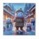 Un encantador muñeco de nieve de color rosa vestido con ropas cálidas de invierno se alza orgullosamente en medio de un pueblo nevado. Está rodeado por sus creaciones: tres adorables hombres de nieve de diferentes tamaños. El cálido resplandor de las casas del pueblo ilumina el lugar, creando un ambiente acogedor y festivo.