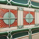 Azulejo Sol art decó y cruz en coral Verde azulado