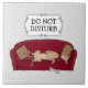 Couch Greyhound - Cute perezoso Greyhound durmiendo, relajándose o descansando en un sofá con almohadas y juguete de perro hueso de perro. No molestar. Derechos reservados © Angi Laframboise. Divertidos regalos de personalizado de raza de perro para los amantes del perro.