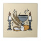 Celebrate faith with this meaningful 'Nourished by Grace, Sustained by Faith' design featuring communion elements like a chalice, bread, wheat, and candles. Perfect for Christian gifts, apparel, and home decor.