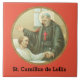 En su juventud, St. Camillus de Lellis (1550-1614) había sido un soldado y había recibido una herida en una pierna desagradable que simplemente no sanaría. Admirado por sus médicas como un funda sin esperanza, se mudó a Roma y entró al Hospital St James para The Incurable. De lo contrario, robusto e inquieto, comenzó a ayudar a atender a los pacientes del hospital. Su actitud hacia los pacientes, la calidad de su atención y su devoción personal le valieron la admiración de los directores del hospital y su nombramiento como administrador jefe del hospital. Aunque inicialmente enfrentó oposición, en 1586, St. Camillus finalmente estableció una congregación, los Padres de una Buena Muerte o la Orden de los Clérigos Regulares, los Ministros de Enfermedades, hoy conocidos como los Camilitares. Los camilenses ayudaron a los enfermos y a los moribundos en hospitales, en campos de batalla (formando el primer servicio de ambulancia militar de campo registrado) y en casas privadas (anticipándose a la atención de hospicio) —en resumen, dondequiera que los encontraran. Además de los tres Consejos Evangélicos —los votos de la pobreza, la castidad y la obediencia que una religión hace— los camileños se convierten en un cuarto: prometen sus vidas ‘para servir a los pobres enfermos, incluidos los acosados por la peste, en sus necesidades corporales y espirituales, incluso en riesgo para su propia vida’. + Aquí se representa a St. Camillus reconfortando a un paciente en una sala de hospital. + St. Camillus es santo patrón de enfermeras, hospitales y enfermos. + Festín: 18 de julio (en Estados Unidos); 14 de julio en otros lugares + Crédito de la imagen (M 021): Detalle de una imagen antigua de St. Camillus de Lellis de una huella devocional italiana de principios del siglo XX en cromolitografía, editorial original desconocido, de la colección privada de ephemera religiosa del diseñador. + ¿Prefiere un esquema de color diferente? Consulte la postal de la paleta de colores para obtener los tonos recomendados. Las postales de la paleta de color se encuentran en la COLLECTION asociada a la imagen y en la COLLECTION especial dedicada sólo a las paletas de color.