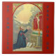 Según su biógrafo, St. Camillus de Lellis (1550-1614) fue dedicado a Cristo crucificado. Dos veces Cristo le apareció —una vez en un sueño y otra en una visión— en un momento en que St. Camillus enfrentaba la oposición a sus planes de fundar su Orden. En esta imagen, St. Camillus, ya vestido con lo que se convertiría en el ‘uniforme’ de su congregación —una sotana negra y una capa con una gran cruz roja, respectivamente, en el pecho y en el hombro derecho— se arrodilla ante un altar coronado por una cruz. Pero, como en su visión, Cristo se libera de la cruz y de los gestos hacia él. "¿Por qué estás preocupado, cobarde?", dijo Jesús. "Sigue con el trabajo. Te ayudaré. ¡Porque este no es mi trabajo tuyo!" Alentados, St. Camillus siguió estableciendo los Clérigos Regulares, Ministros a los Enfermos, hoy conocidos como los Camilianos. Y, después, San Camilo llevó consigo ese crucifijo por todas partes que fue hasta 1586, cuando a su naciente Congregación le asignó la Iglesia de Santa María Magdalena en Roma por el Papa Sestus V, donde fue entonces instalado. + Hoy, el crucifijo permanece expuesto en "La Maddalena" en una capilla lateral en la parte trasera de la iglesia en el lado derecho. La Iglesia también alberga numerosas reliquias camilandesas. Y, el mismo santo está enterrado bajo su altar mayor. St. Camillus es el santo patrocinador de enfermeras, hospitales y enfermos. + Festín: 18 de julio (en Estados Unidos); 14 de julio en otros lugares + Crédito de la imagen (M 020): Imagen antigua de St. Camillus de Lellis de finales del siglo XIX-principios del siglo XX, impresa devocional italiana en cromolitografía, editorial original desconocido, de la colección privada de ephemera religiosa del diseñador.
