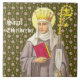 St. Etheldreda (o Audrey; c. 636-679) es uno de los santos ingleses medievales más populares de Gran Bretaña. Nació como princesa de Anglia Oriental, se convirtió en reina de Northumbria y murió como monja. Viuda una vez y se casa dos veces por razones de Estado, sin embargo, sigue siendo virgen. Cuando su segundo marido comenzó a presionar por sus derechos matrimoniales, solicitó la asistencia de St. Wilfred, Arzobispo de York, quien le aconsejó que se convirtiera en una monja e incitó a ejercer su profesión. Ella hizo sus votos en Coldingham en 672. En los años siguientes, fundó un gran monasterio doble para hombres y mujeres en Ely, Cambridgeshire, sobre el cual presidió como abadesa. En poco más de cuatro siglos, en 1109, el lugar de su abadía en Ely se constituiría como catedral. Murió de una dolorosa dolencia en la garganta en 679. + Acá, a St. Etheldreda (Audrey) se la representa como abadesa, habiendo dejado a un lado su bata real con su forro de ermino, cetro y corona secular que aparecen en el suelo a sus pies (no visible en este detalle). Ahora lleva una corona rayada con flores estilizadas. En su mano derecha, sostiene un libro; a su izquierda, el crosier de su abeja con su sudario o "tela de sudor" usado para evitar la decoloración del eje metalizado del personal por una palmera sudorosa. Por lo general, tiene un modelo de la Catedral de Ely y una varilla o lirio en ciernes de pureza. + Festín: 23 de junio + Crédito de la imagen (P 003): Detalle de una imagen antigua de S[t].Etheldreda.A[bbess].V[irgin]. de una impresión devocional de finales del siglo XIX en cromoxilografía, publicada originalmente por Friedrich Pustet, Regensburg, Nueva York y Cincinnati. De la colección privada del diseñador de la ephemera religiosa.