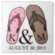 Celebra el día de la boda o el aniversario de tu novia y novio favoritos amantes de la playa con este diseño de personalizable veraniego! Un chanclo rosado para la novia y uno marrón para el novio, cada uno de ellos, tienen un monograma sobre el talón. A continuación se puede añadir un marcador negro y separarlos y una fecha boda. Hace un regalo o accesorio lindo y deportivo boda.