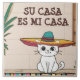 "su casa es mi casa", "funny cat humor joke", "cartoony cartoon white kitty", "kitten wearing sombrero hat", "latino latin mexican spanish", "hispanic latina latinx humour", "kitten pet owner fun", "cute cat mom dad gift", "southwestern beige earthtones", "house home warming sign plaque"