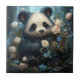 Azulejo Suave oso panda entre Rosas de la selva