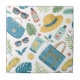 Vibrant seamless summer pattern ceramic tile featuring straw hats, sunglasses, tote bags, sunscreen, flip flops, tropical leaves, and flowers on a clean white background. Ideal for beach lovers, vacation fans, tropical style enthusiasts, and anyone who loves sunny summer aesthetics.