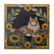 Azulejo Sunflower Cats - MaineCoon Cat & Yellow Sunflowers