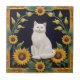 Azulejo Sunflower Cats - White Cat & Yellow Sunflowers