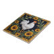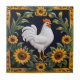 "white chicken on black", "farm egg laying hen", "yellow sunflower flowers", "summer sunflowers floral", "farming fowl poultry", "rural rustic ceramic tile", "farmhouse countryside country", "green leafy leaves", "cute chickens", "chicken mom dad gift"