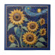 "flores de girasol amarillas", "girasoles sobre azul marino", "noche estrellada de azul oscuro", "arte de mosaicos de estilo gaudí", "diseño inspirado en van gogh", "jardín de verano con estrellas", "cielo lunar y estrella", "azulejos de cerámica floral", flor, girasol