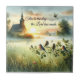 Azulejo Sunrise Church with Birds in Misty Meadow