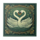 Azulejo Swan Couple Art Nouveau Forest Green Wall Accent