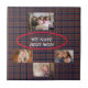 Este encantador regalo es ideal para mostrar amor a tu madre. Muestra una colección de preciadas fotos familiares. En el centro superior, se acentúa una importante imagen familiar. Rodeada por un borde ovalado rojo, la frase "Tenemos a la mejor madre" está escrita en el medio en un tipo de escritura a mano llamado Freestyle. A continuación, se colocan más imágenes de manera inteligente, de modo que las esquinas inferiores de las dos fotos exteriores toquen las esquinas superiores de la foto central inferior. Esta disposición se presenta con un fondo animado de tonos rojos, azules y rojos escoceses. Para un toque personal, simplemente intercambie las imágenes de marcador de posición con las suyas. Las fotos de ejemplo son proporcionadas por Photography © Storytree Studios, Stanford, CA.
