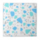 Elegante baldosa de cerámica moderna y elegante, con un diseño de terrazo impecable de color azul y turquesa sobre un fondo blanco. Diseño limpio y fresco, perfecto para las paredes de diseño interior.