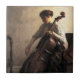 Este diseño presenta un cuadro del artista impresionista estadounidense Joseph DeCamp (1858-1923). Representa a una violonchelista mientras sostiene su instrumento musical y toca una melodía dibujando el arco a través de las cuerdas. La mujer está sentada al borde de una silla de madera mientras toca el violonchelo. Su postura es recta pero elegante. El violoncello, también conocido como violoncello, es un instrumento de cuerda doblada de la familia del violín. Sus cuatro cuerdas suelen estar sintonizadas en mitades perfectas: de bajo a alto, C, G, D y A. La obra original fue pintada por Joseph DeCamp en 1908.
