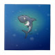 Azulejo Tiburón gracioso sonriente con fondo azul