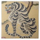 Un "Minhwa" representa el folklore coreano creado por artistas desconocidos a lo largo de siglos. El tigre es una figura asociada con la cultura coreana y un animal feo o deforme puede representar a aristócratas tontos o corruptos, según la leyenda. Esta minhwa representa un tigre rayado y contorneado.