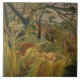 Este diseño presenta un cuadro del artista post-impresionista francés Henri Rousseau (1844-1910). Muestra a un tigre atrapado en una tormenta tropical. El tigre está en una selva verde y verde con muchas hojas y árboles. Hay truenos y relámpagos en el cielo. La obra de arte está pintada en un estilo ingenuo y infantil, lo que la convierte en un lugar particularmente atractivo para los niños, y fue producida por primera vez en 1891.