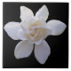 Este impresionante florecimiento es la Gardenia de Cabo Jazmín. Hay varias variedades de jardinería. Este es distintivo por el despliegue inicial de los (normalmente seis) pétalos exteriores, seguido de una flor interior de estilo rosa. Las gardenias tienen una fragancia maravillosa, ligeramente picante, que la convierte en una elección popular para los perfumistas. Se cree que se debe a Alexander Garden, un Charleston, Carolina del Sur, un médico, gardenias también se han asociado con el Sur. La flor, que alguna vez fue muy popular en los ramos de los bodas, se utiliza con poca frecuencia en los ramos debido a su naturaleza delicada. Hay que tener mucho cuidado con el cuidado y manejo de estas flores. Si se maneja demasiado la flor, los pétalos se volverán negros. Esta espectacular floración se presenta sobre un telón de fondo negro para un diseño realmente llamativo. Sin embargo, puedes cambiar el color de fondo para adaptarlo mejor a tu personalidad o a tu estilo personal. Esta magnífica baldosa hace de la cocina o del baño un excelente trívet, una montaña rusa o un acento.
