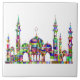 Un trívet de cerámica con un diseño de mezquita prismática colorido que ilumina la belleza del Islam.