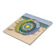 Esta mandala temática de la playa cuenta con capas de conchas, veleros, arena, sol, mar y palmeras dentro de una bola de playa transparente para recordar la diversión que viene con el verano. Esta baldosa puede enmarcarse para crear un trívet o colocarse dentro de una caja de regalo de madera. Los mosaicos sin marco también caben dentro de la gran caja de regalo para crear un conjunto de coincidencias.