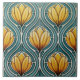 Azulejo Tulipanes amarillos en Art Nouveau Simétrico Azul