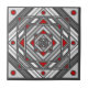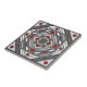 Una mandala cuadrada concéntrica toma la apariencia de un túnel que atrae al espectador con una combinación de líneas anguladas, triángulos y círculos en tonos grises, rojos y blancos para casi crear una ilusión óptica. Esta baldosa puede enmarcarse para crear un trívet o colocarse dentro de una caja de regalo de madera. Los mosaicos sin marco también caben dentro de la caja de regalo para crear un conjunto de coincidencias.