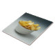 Un bol lleno de papas fritas con un fondo dramático. Parece crujiente y sabroso comer como un bocadillo. Es un buen diseño para tu baldosa, sobre todo si te gustan las papas fritas.