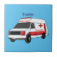 ¡Esta feliz ambulancia roja está en camino de ayudar! Dibujado en un divertido estilo personalizado.