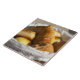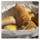 Azulejo Una cesta de desayuno de mimbre con cruasanes, y