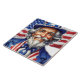 El tío sonriente Sam USA Icono estadounidense usando un traje americano y una bandera norteamericana ondeando al fondo