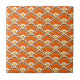 Baldosas de cerámica en un patrón chino de vieiras o olas, tradicionales en el trabajo textil y de esmalte, naranja de mandarina profunda, marrón chocolate y blanco, con acentos de oro de mostaza