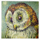 Una adorable lechuza tímida en este ilustracion vintage. El búho está puesto contra un cielo estrellado.